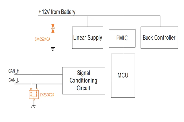 无论是在汽车启动时电压的瞬时升高,还是在负载突变时,SM8S系列产品都能快速响应,保 持输出电压的稳定,从而确保仪表盘系统的正常工作。 在仪表盘的电源口处会用到的TVS型号为SM8S24CA,CAN总线ESD上常用到LY23DC24 等等。 此外,SM8S24CA采用紧凑的表面贴装封装,特别适合空间受限的仪表板设计。不仅节省了宝贵的电路板空间,而且提高了整体设计的美观度。同时,低漏电流特性也有助于优化仪表盘系统的功耗,延长电池寿命,这对于电动汽车和混合动力汽车来说尤为重要。 未来展望 随着汽车行业向更高的自动化和智能化迈进,对高效、可靠的电路保护的需求日益增长,里阳半导体的SM8S系列TVS提供了一种既经济又高性能的解决方案,适合用于保护智能座舱的仪表盘线路。 选择里阳半导体,就是选择了一种智能的、高效的保护策略,让每一次驾驶都成为安全愉快的旅程。 关于里阳 里阳半导体成立于2018年,是业内领先的电路保护元器件IDM供应商,一直致力于电力电子半导体芯片的设计、研发、制造和销售。 我们的团队拥有超过20年的行业经验,凭借深厚的技术积淀、卓越的产品性能和广泛的市场应用以及一流的技术和创新能力,成为电力电子半导体器件领域的引领者。